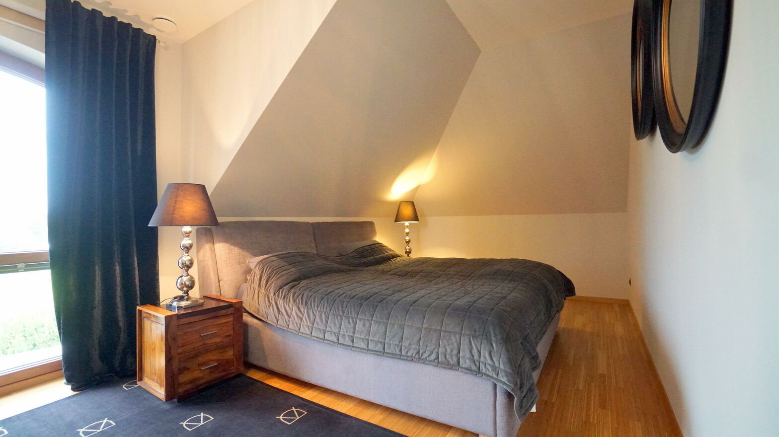 Poddasze użytkowe: Na piętrze czekają na Ciebie trzy komfortowe sypialnie (11,62 m2, po podłodze 18,48 m2, 14,17 m2, 15,97 m2, po podłodze 20,16 m2). Jedna z nich posiada prywatną łazienkę (5,15 m2, po podłodze 7,98 m2) oraz garderobę (2,93 m2, po podłodze 6,21 m2), a inna oferuje wyjście na duży taras (około 20 m2), z którego rozpościera się widok na urokliwą okolicę. Każda z sypialni wyposażona w klimatyzator. Dodatkowa łazienka na piętrze zapewnia wygodę dla pozostałych domowników (7,29 m2, po podłodze 11,56 m2).